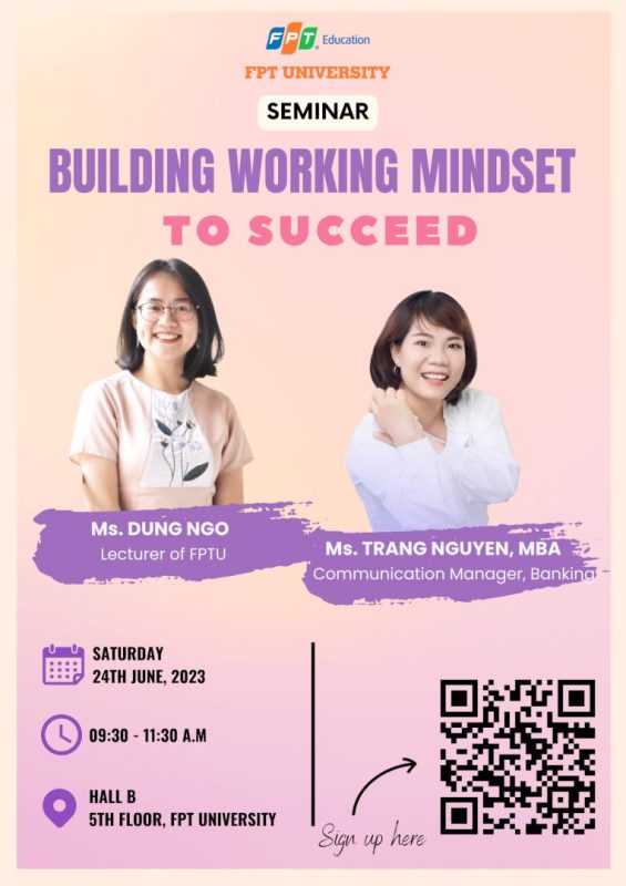 Thì seminar ”Building Working Mindset to Succeed” dành cho bạn.