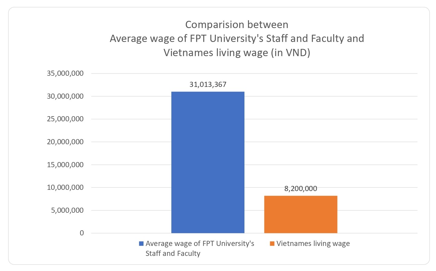 Staff and faculty at FPT University were paid 3.7 times more than the average wages of Vietnamese labor (stated in the Press release on labor and employment situation in the fourth quarter of 2024, published on the website of the General Statistics Office – Ministry of Planning and Investment Vietnam).