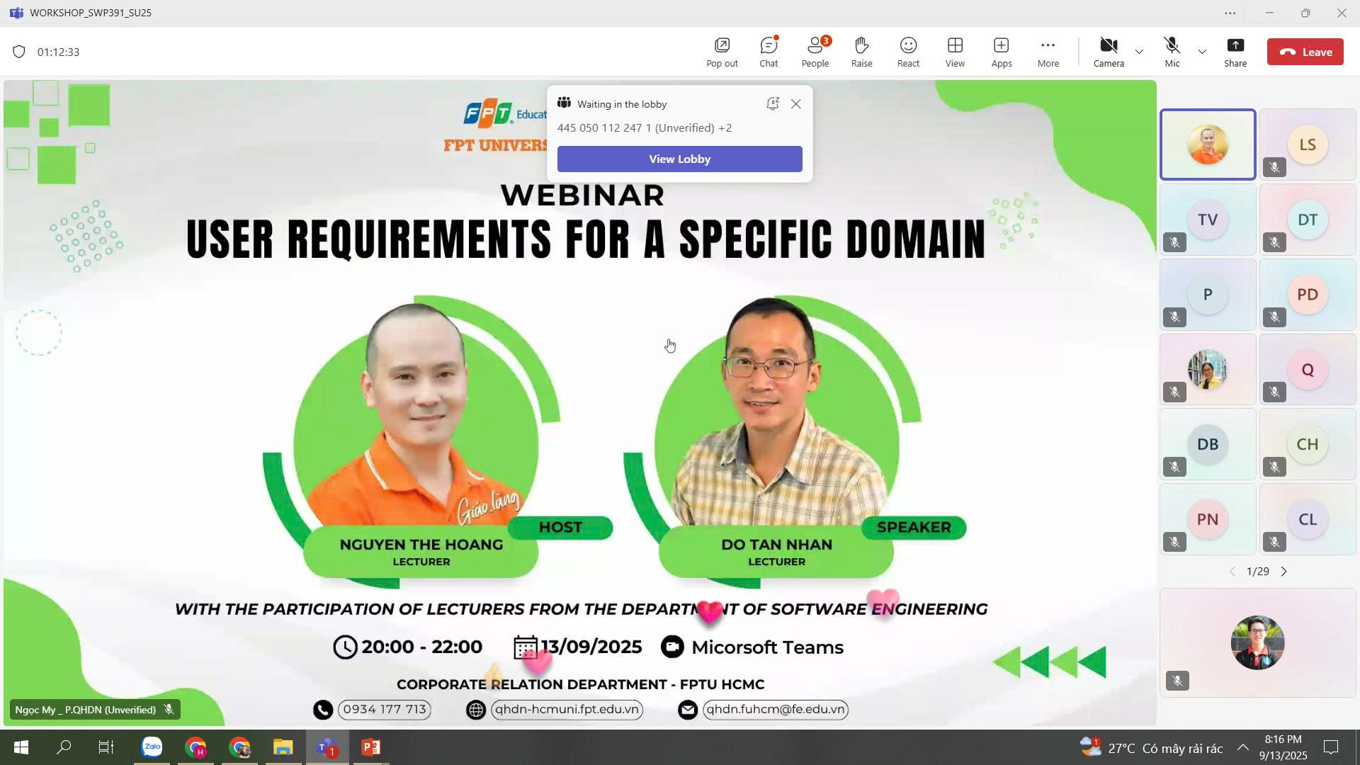 Học kỳ Fall 2025, Bộ môn Kỹ thuật Phần mềm – Trường ĐH FPT – Campus TP. HCM đã tổ chức thành công chuỗi 5 buổi Webinar SWP391-Talk Fall 2025, đồng hành cùng sinh viên chinh phục môn học SWP391 – bước đệm quan trọng trước khi bước vào kỳ OJT.