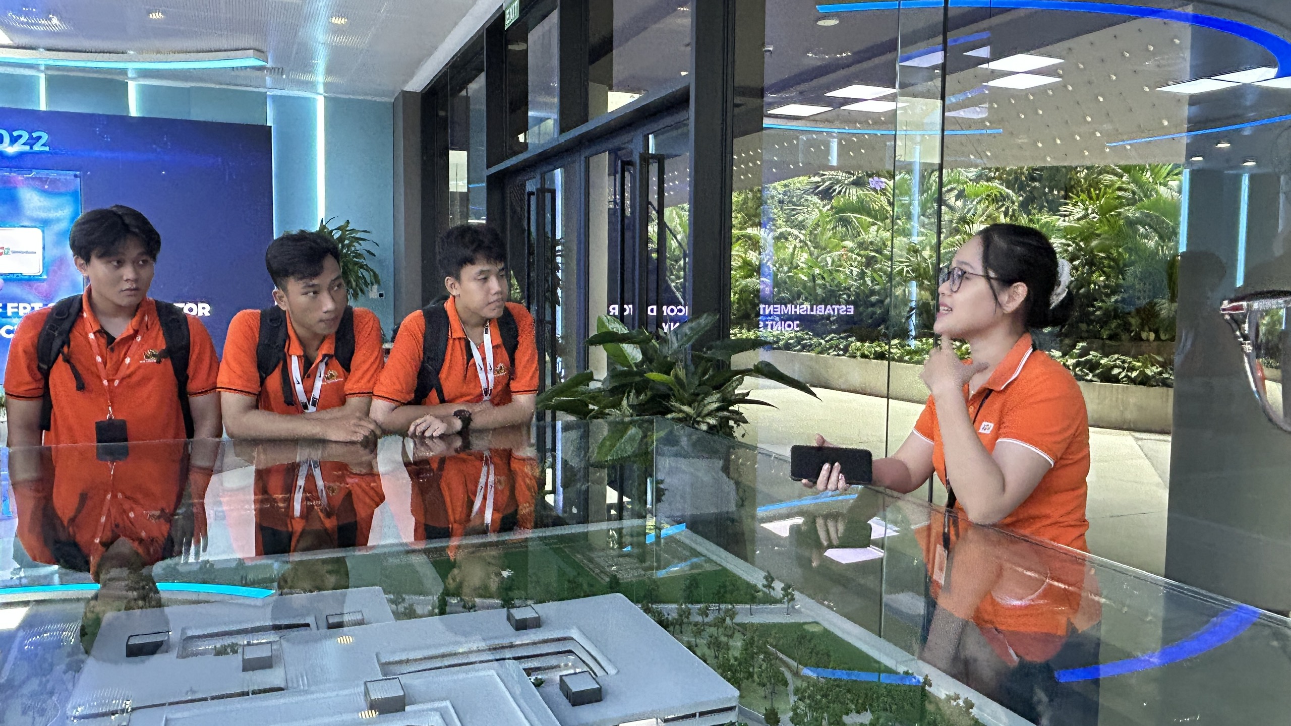 Mở đầu chương trình, sinh viên được tham quan campus hiện đại của FPT Software, tìm hiểu môi trường làm việc tiêu chuẩn quốc tế, cũng như lắng nghe các chuyên gia nhân sự và kỹ thuật chia sẻ về cơ hội nghề nghiệp, kỹ năng cần thiết và các chương trình thực tập – tuyển dụng dành riêng cho sinh viên Đại học FPT.