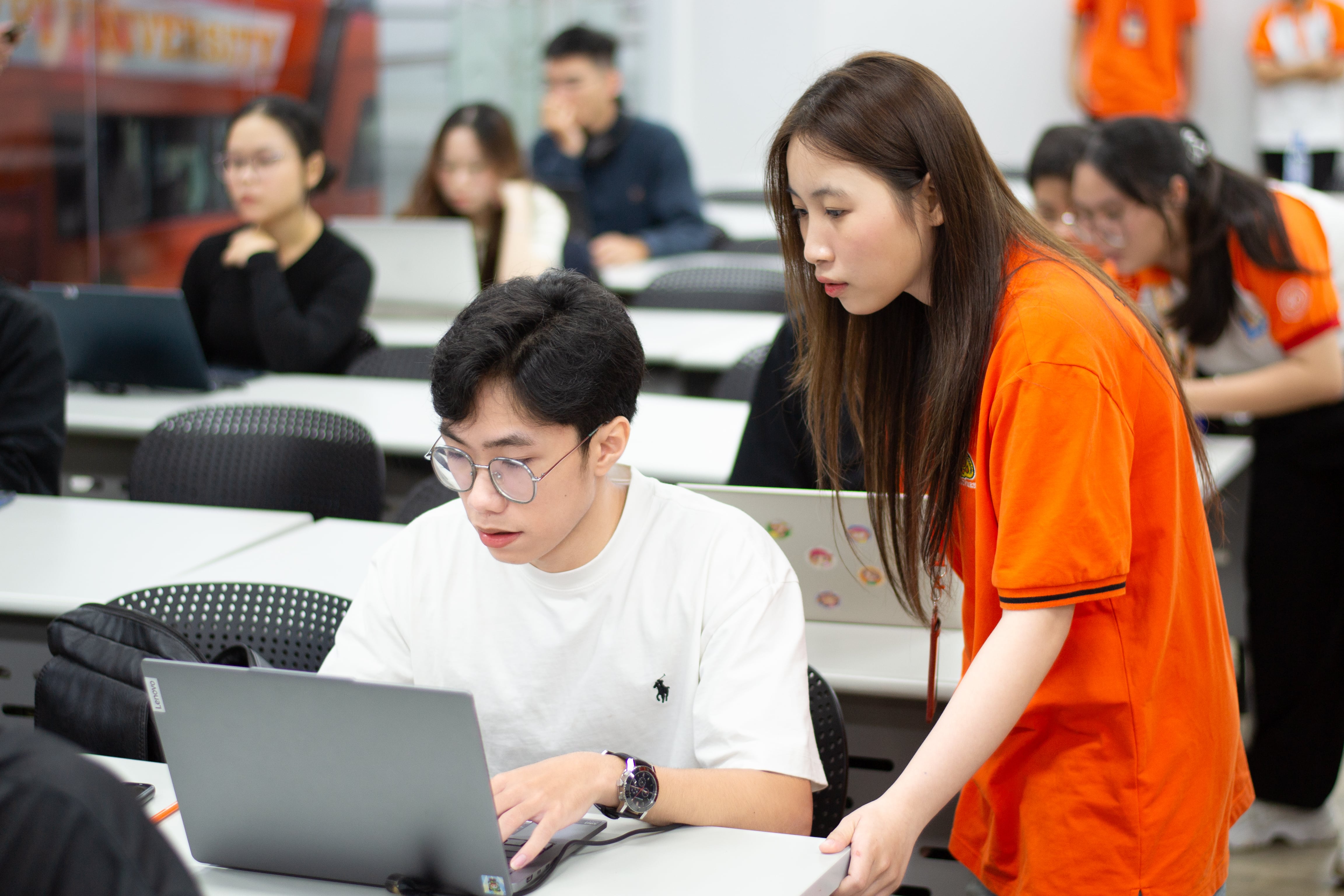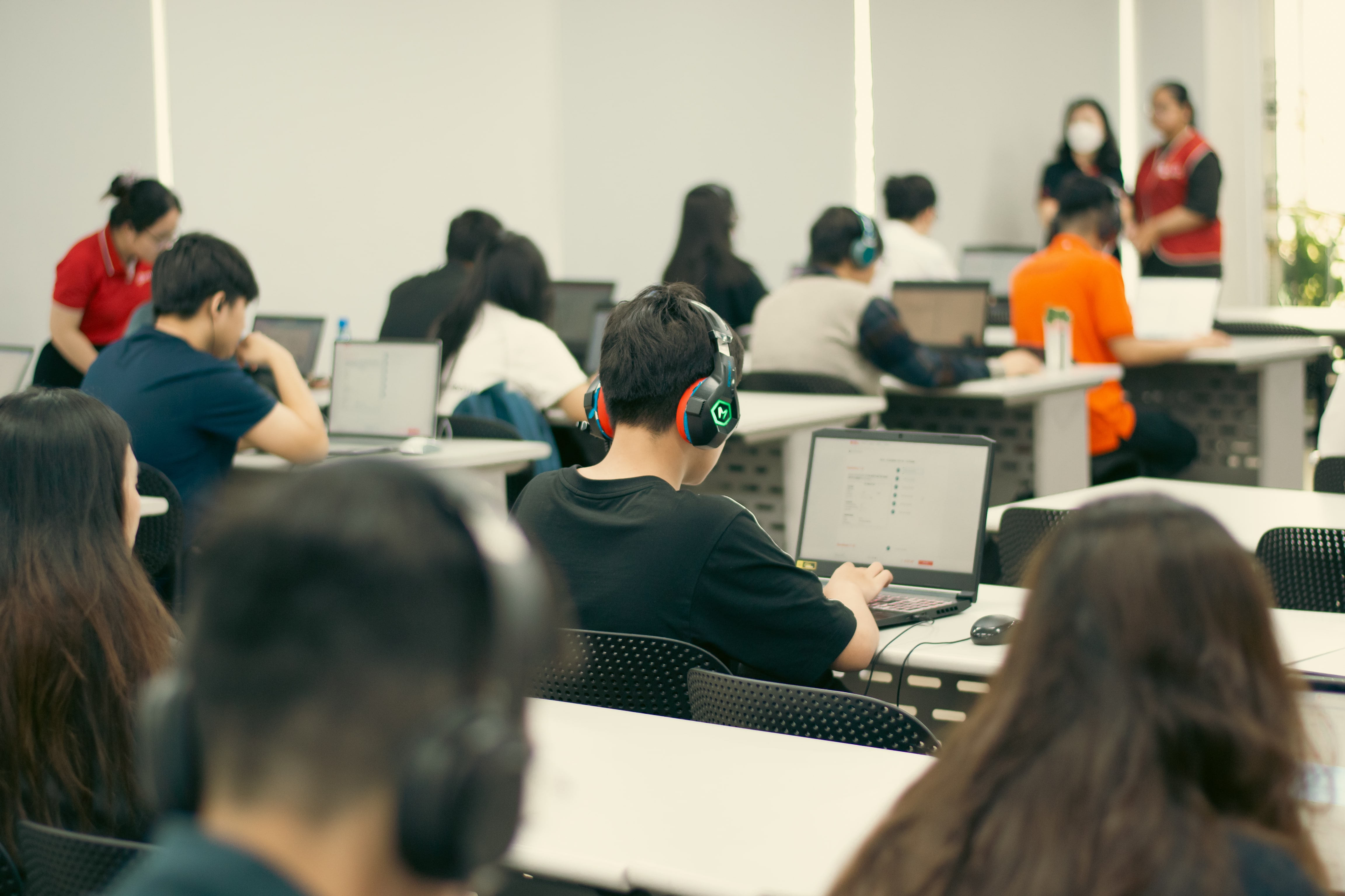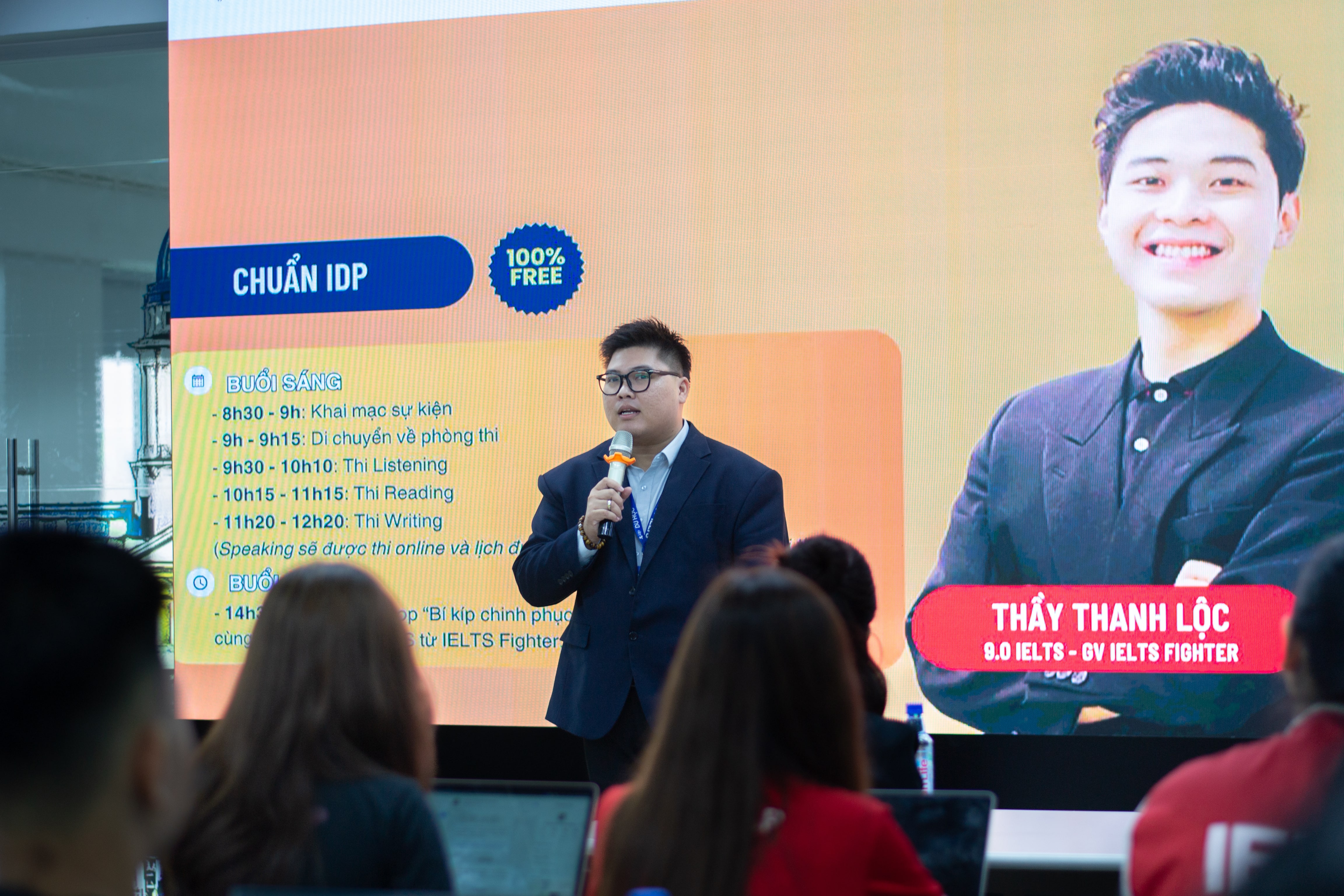 Buổi sáng, Kỳ thi thử IELTS được tổ chức dưới sự hỗ trợ giám sát từ IDP, mang đến cho sinh viên trải nghiệm thực tế của một kỳ thi IELTS chuẩn quốc tế. Trước khi bước vào bài thi, đại diện IDP đã chia sẻ những thông tin quan trọng về quy trình, quy định và hình thức thi, giúp sinh viên hiểu rõ hơn về cấu trúc cũng như tinh thần cần chuẩn bị. Sau khi hoàn thành bài thi, các bạn còn được nhận phản hồi trực tiếp, giúp xác định điểm mạnh và những kỹ năng cần cải thiện.