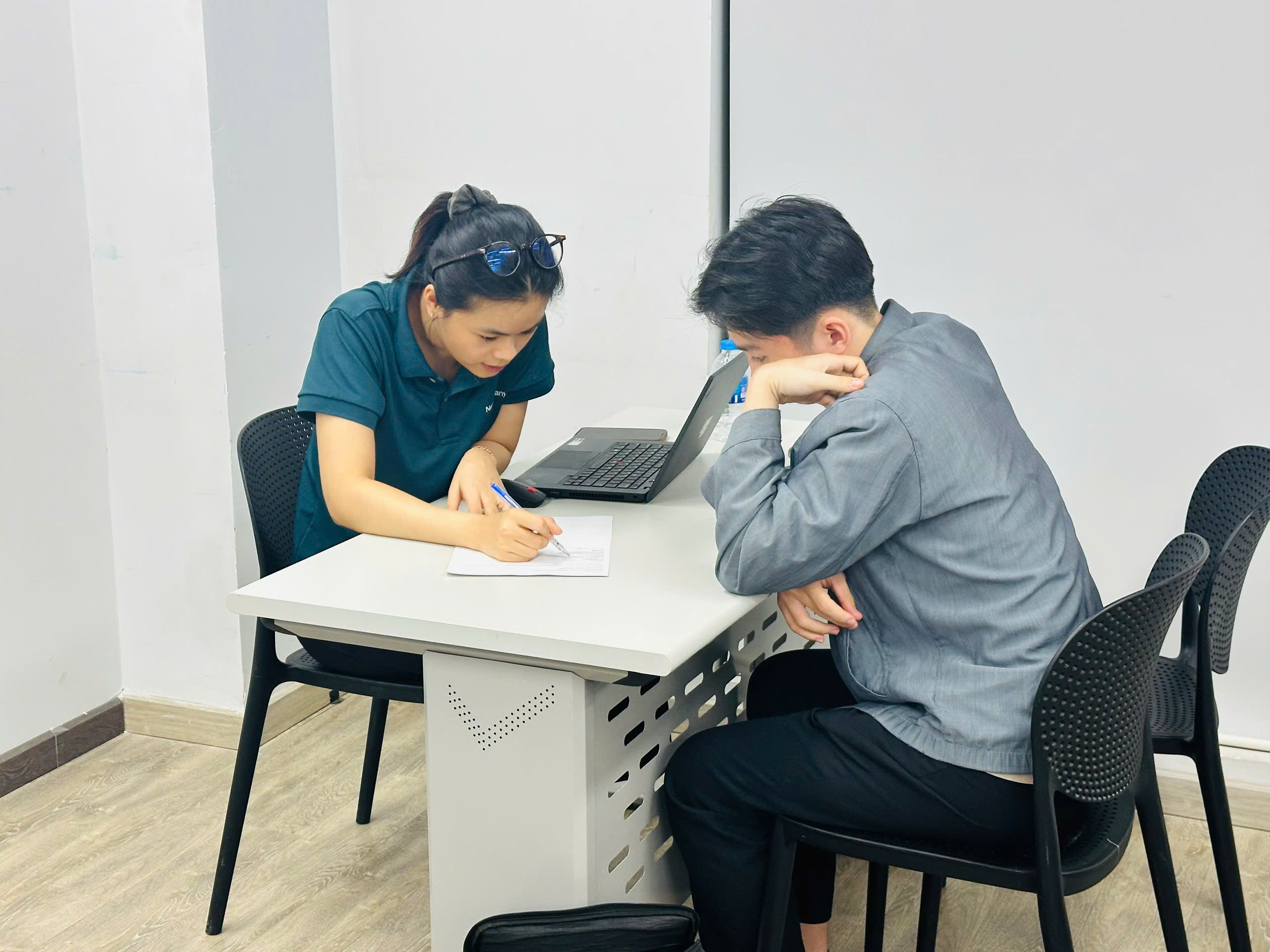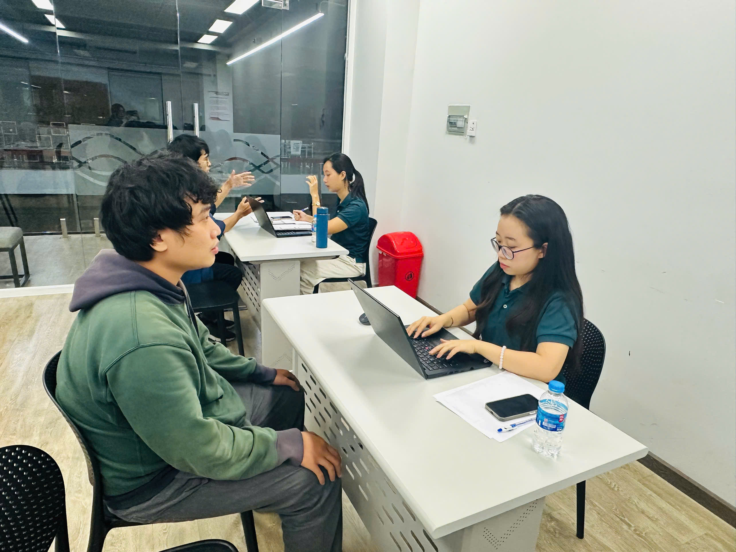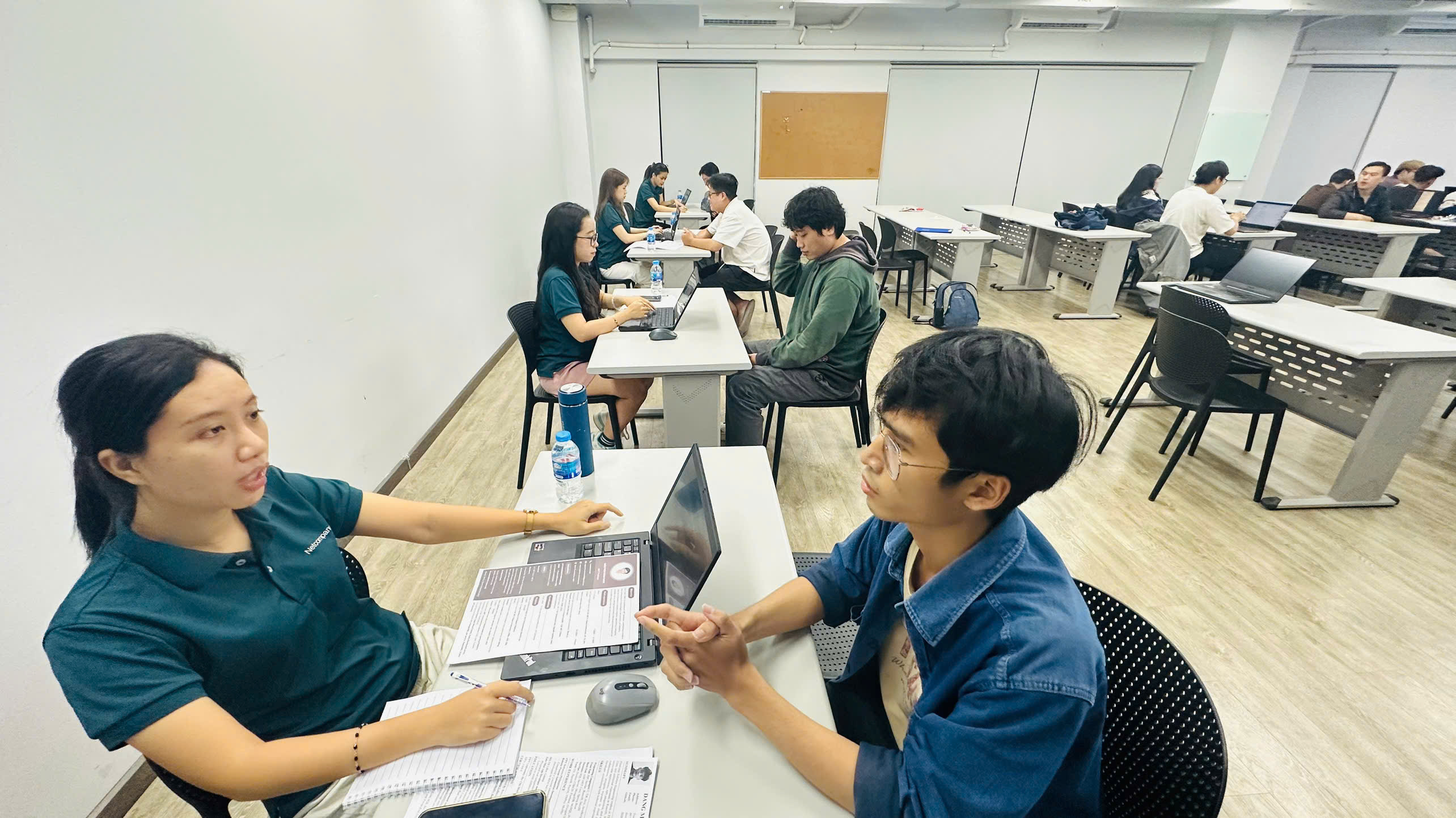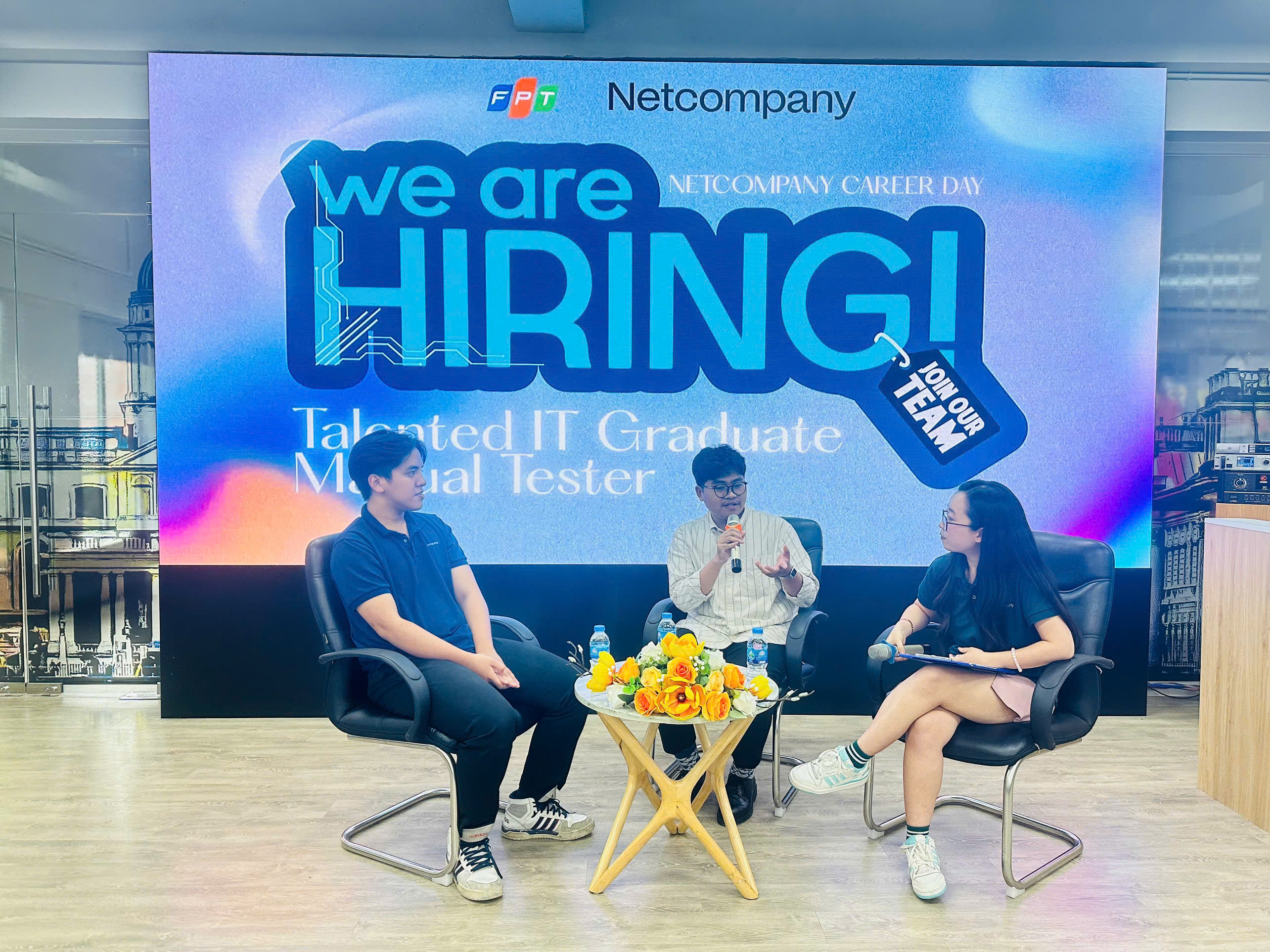 Ngay sau phần chia sẻ, chương trình bước vào phần quan trọng nhất: vòng phỏng vấn tuyển dụng đầu tiên. Tất cả các bạn sinh viên FPT đã mang theo CV, sự chuẩn bị kỹ lưỡng và tinh thần quyết tâm để chinh phục nhà tuyển dụng. Từng gương mặt sinh viên không giấu nổi sự hồi hộp xen lẫn háo hức, khi đây là cơ hội để các bạn trực tiếp thể hiện năng lực, kỹ năng và niềm đam mê công nghệ. Đối với nhiều bạn, buổi phỏng vấn này là dấu mốc quan trọng, mở ra cánh cửa để trở thành một phần của Netcompany – nơi có thể phát triển sự nghiệp IT ở tầm vóc quốc tế.