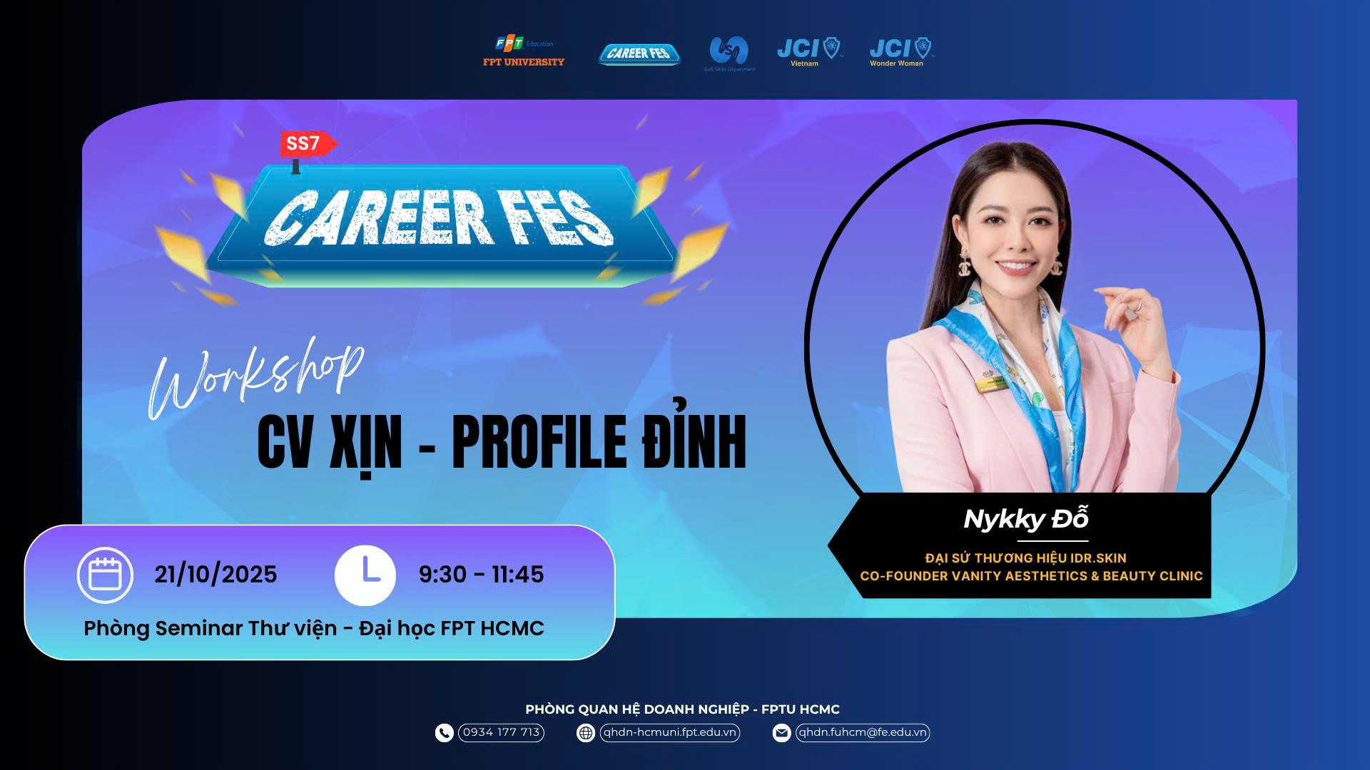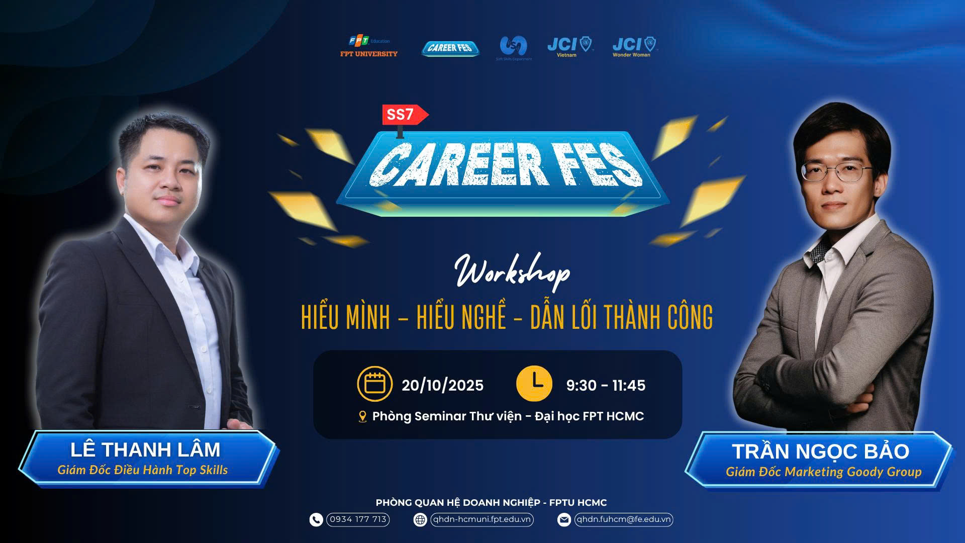 Chuỗi Career Fes mùa 7 hứa hẹn sẽ mang đến cho sinh viên FPTU không gian kết nối và học hỏi, nơi bạn được gặp gỡ trực tiếp với các chuyên gia hàng đầu để khám phá con đường sự nghiệp tương lai.