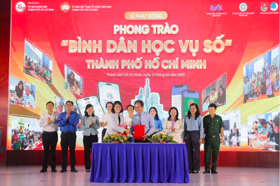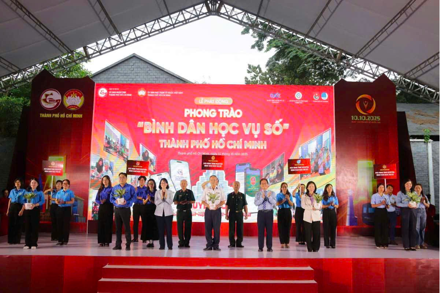Sáng ngày 11/10/2025, nhân Ngày Chuyển đổi số Quốc gia, UBND TP.HCM phối hợp cùng Ủy ban Mặt trận Tổ quốc Việt Nam TP.HCM và các tổ chức chính trị – xã hội đã tổ chức Lễ phát động phong trào “Bình dân học vụ số”. Sự kiện thu hút hơn 700 đại biểu đến từ các sở, ban, ngành, tổ chức chính trị – xã hội và lực lượng tình nguyện, với mục tiêu lan tỏa thông điệp “Mỗi công dân là một hạt nhân chuyển đổi số.” Phó Chủ tịch UBND TP.HCM Trần Thị Diệu Thúy nhấn mạnh, phong trào mang ý nghĩa thiết thực trong việc phổ cập kiến thức và kỹ năng số đến mọi tầng lớp nhân dân, qua đó thúc đẩy quá trình chuyển đổi số toàn diện của thành phố.