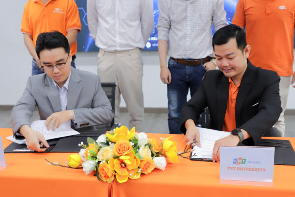 Đại diện hai bên chính thức ký kết biên bản hợp tác, đánh dấu bước khởi đầu cho mối quan hệ hợp tác  giữa Trường Đại học FPT và Pythera AI
