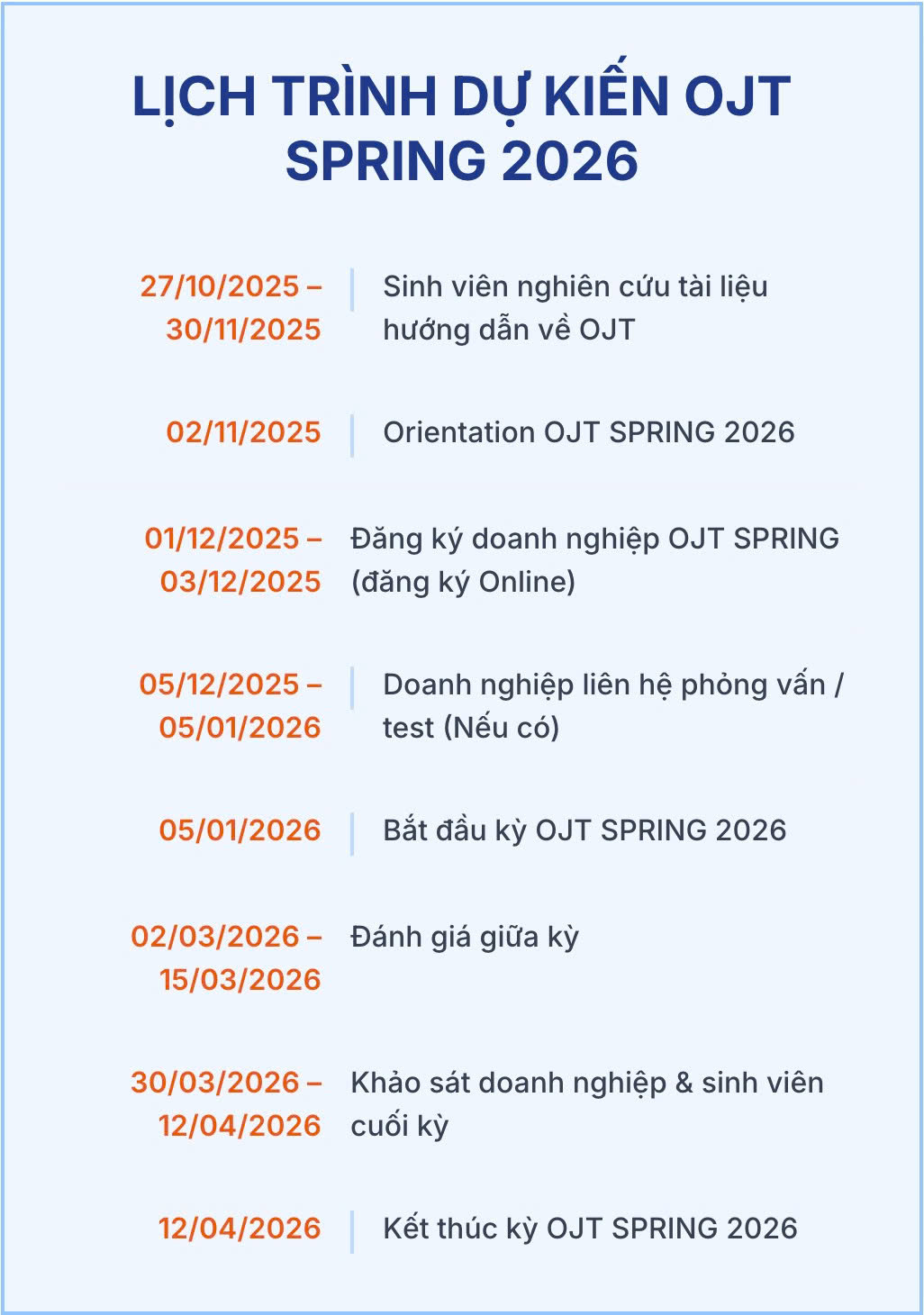 - LỊCH TRIỂN KHAI DỰ KIẾN OJT SPRING 2026