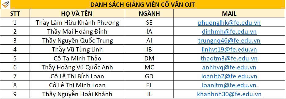 - DANH SÁCH GIẢNG VIÊN CỐ VẤN OJT SPRING 2026