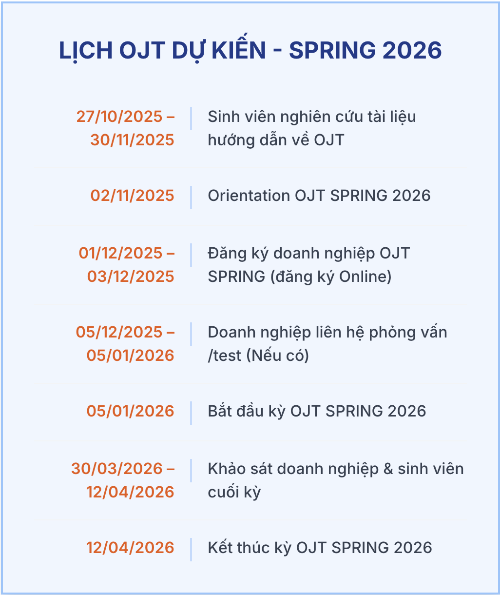 - LỊCH TRIỂN KHAI DỰ KIẾN OJT SPRING 2026