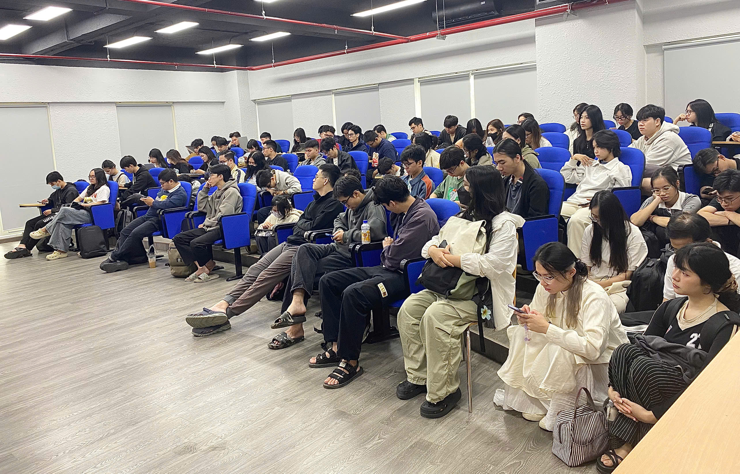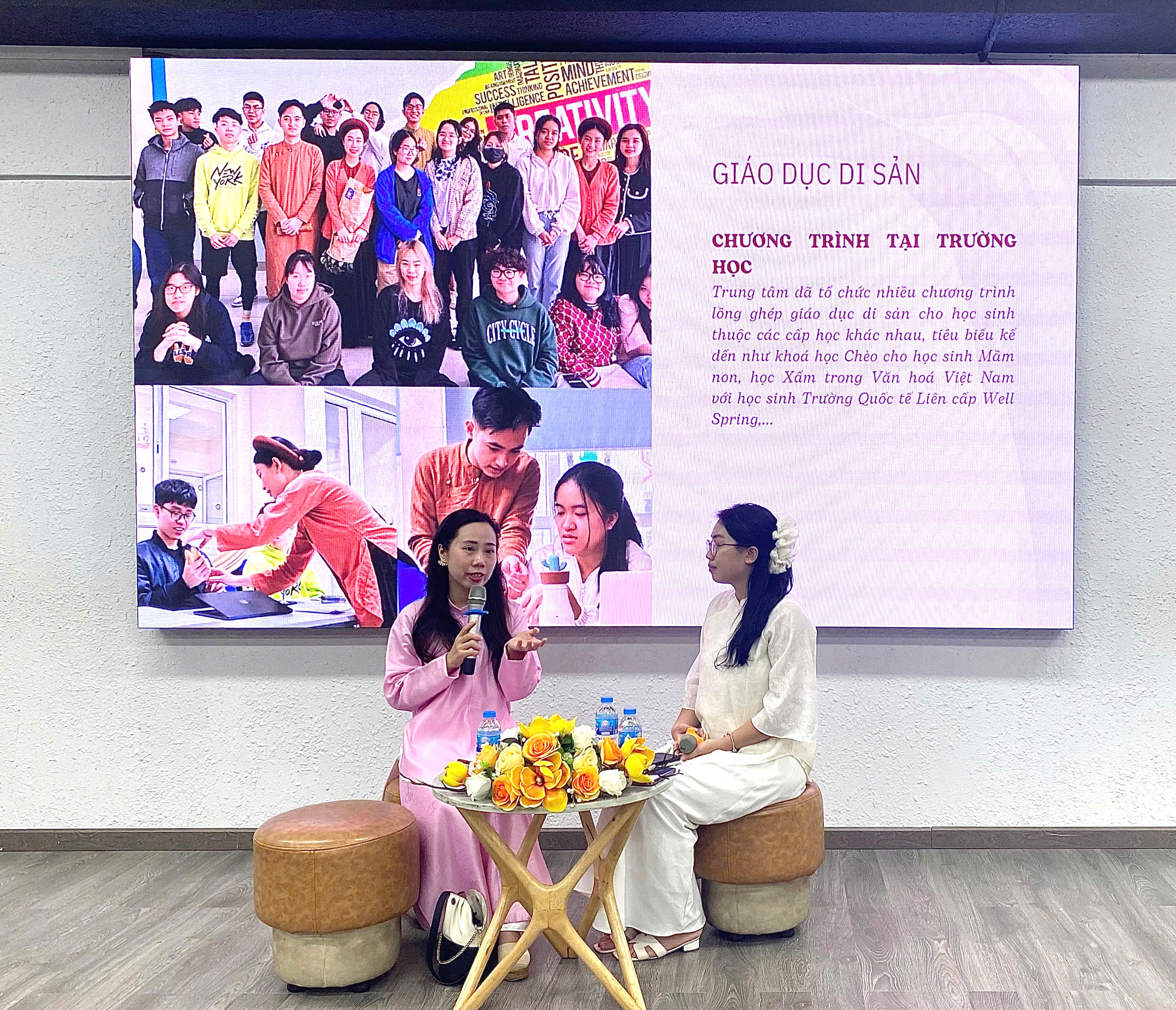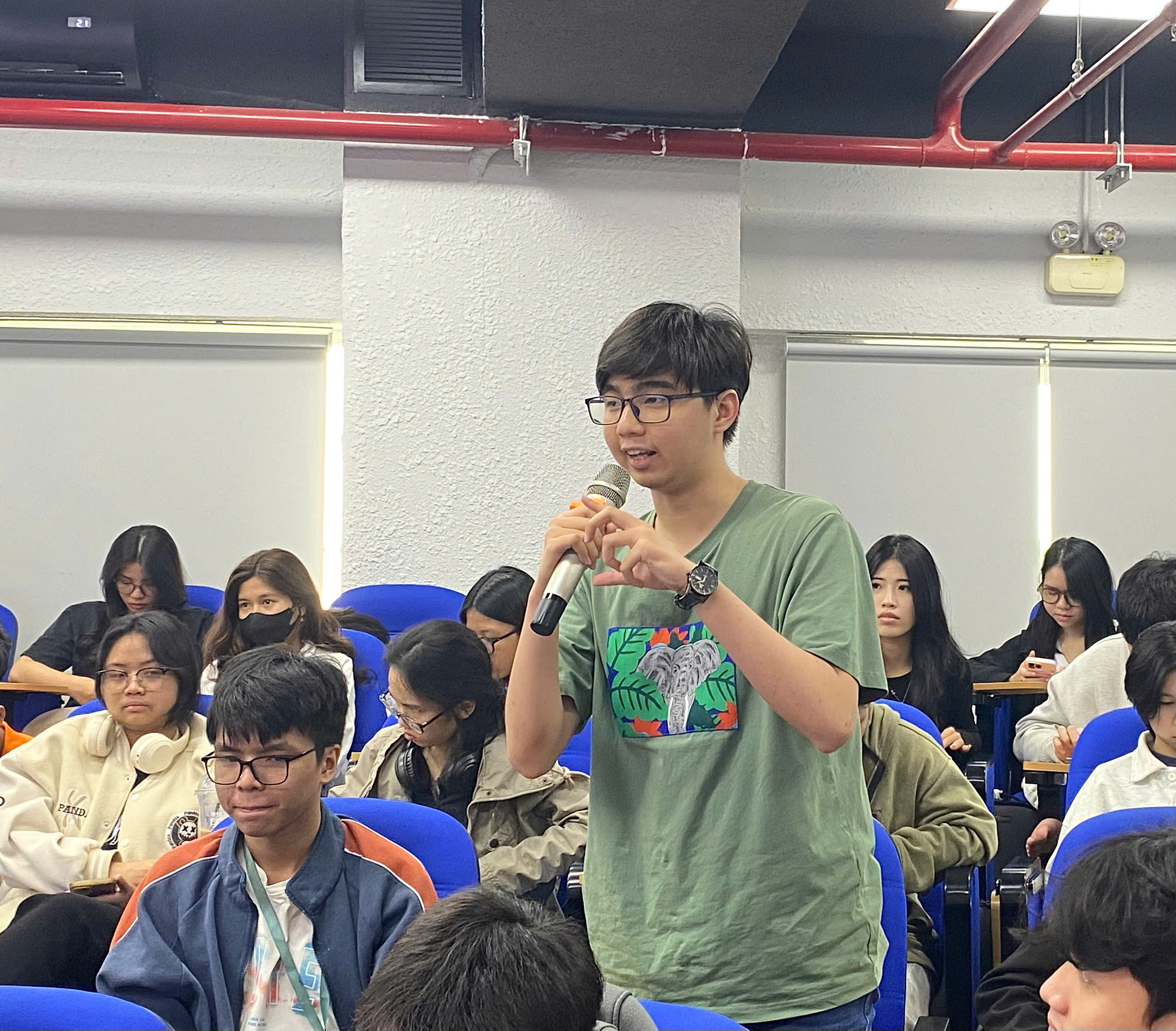Sinh viên tham dự chăm chú lắng nghe và đặt câu hỏi sôi nổi, đặc biệt quan tâm đến việc đưa chất liệu văn hoá vào sáng tạo hiện đại.