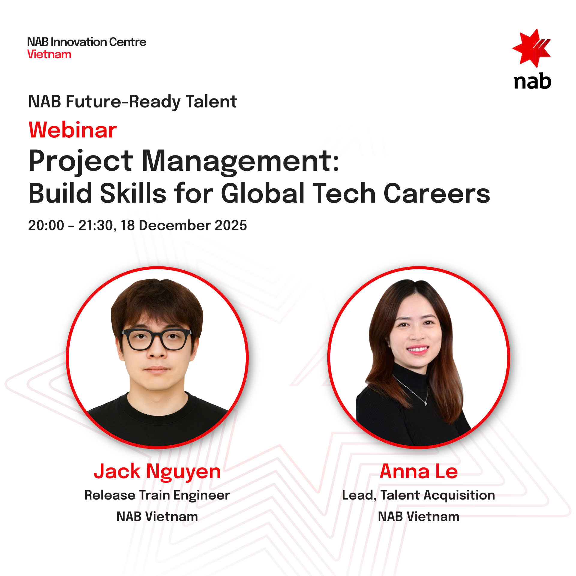 Để giúp các bạn trẻ hiểu rõ vì sao kỹ năng PM lại quan trọng trong bối cảnh công nghệ hiện đại, NAB Innovation Centre Vietnam mang đến Webinar #3 thuộc chuỗi Future-Ready Talent với chủ đề: “Project Management: Build Skills for Global Tech Careers