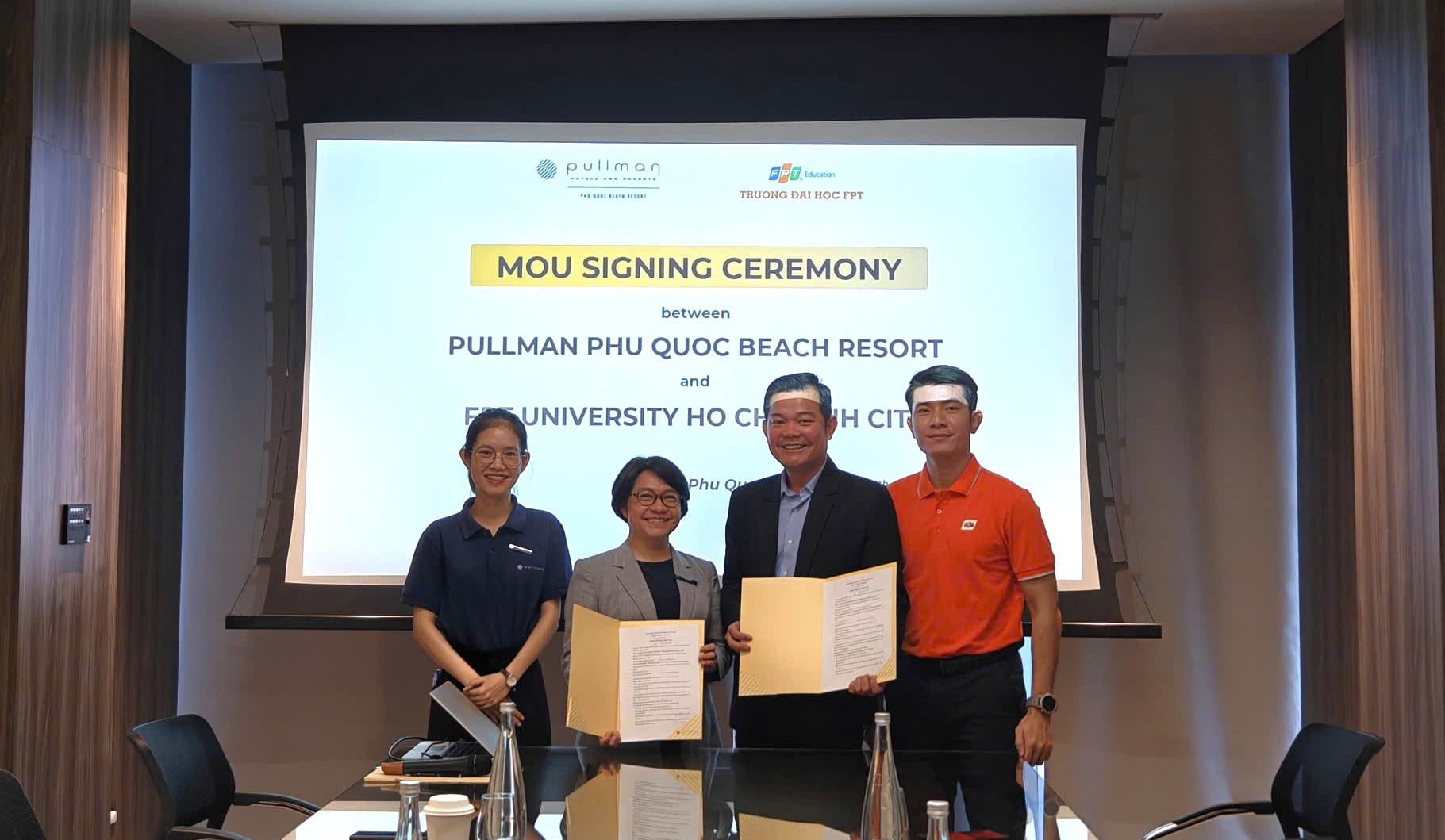 Ngày 15 tháng 12 năm 2025, đại diện Trường Đại học FPT đã chính thức trao Biên bản Thỏa thuận Hợp tác (MOU) với Pullman Phú Quốc Beach Resort và Premier Village Phu Quoc Resort. Sự kiện đánh dấu bước tiến quan trọng trong việc mở rộng mạng lưới doanh nghiệp đối tác và nâng cao chất lượng triển khai Chương trình Học kỳ OJT (On-the-Job Training) cho sinh viên.