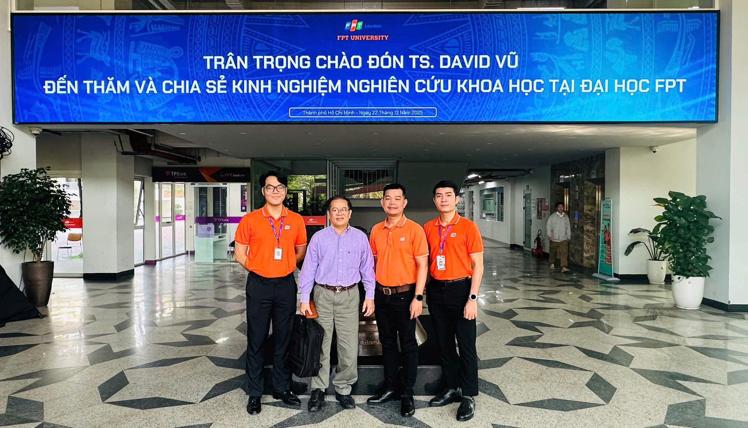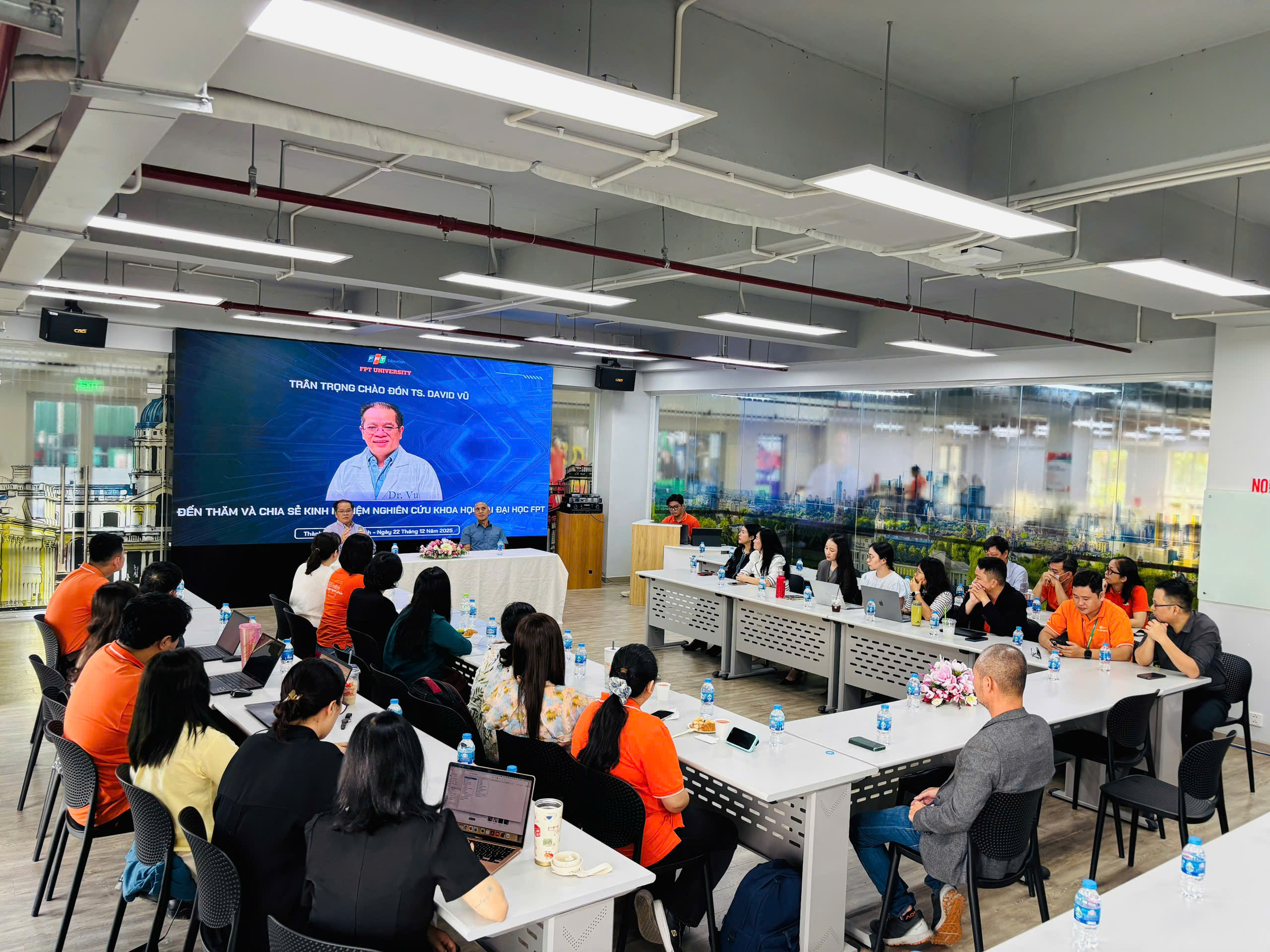 Sáng ngày 22/12, Trường Đại học FPT TP.HCM đã tổ chức buổi đón tiếp và trao đổi chuyên môn cùng Tiến sĩ David Vũ. Buổi gặp gỡ là cơ hội quý báu để đội ngũ giảng viên Nhà trường tiếp cận những kinh nghiệm nghiên cứu khoa học tiên tiến từ môi trường quốc tế.