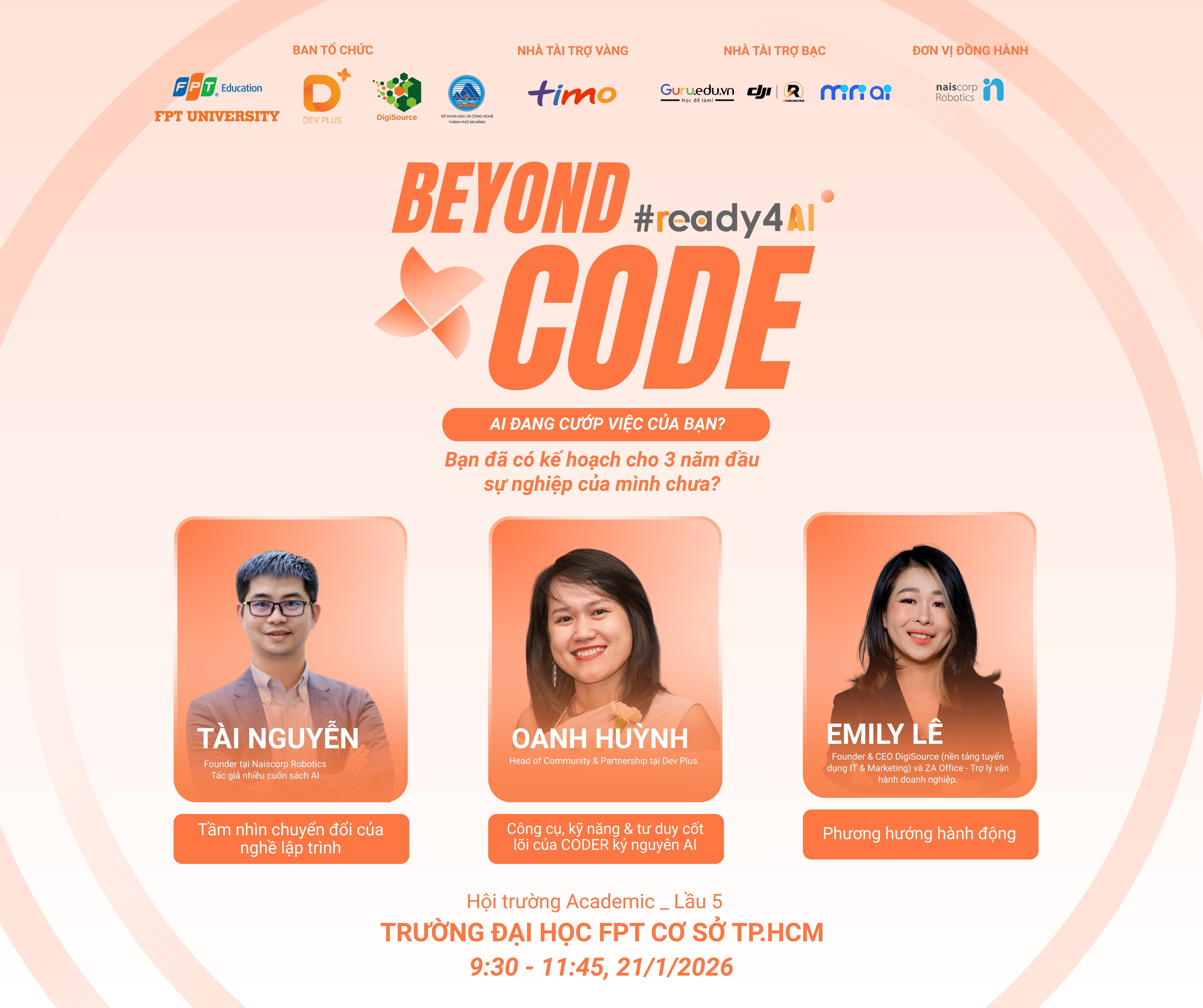 👤 Speaker: Ms. Oanh Huỳnh – Head of Partnership and Community Dev Plus – Công cụ, kỹ năng & tư duy cốt lõi của CODER kỷ nguyên AI