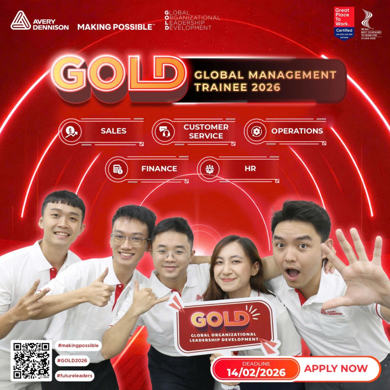 GOLD 2026 là bệ phóng nuôi dưỡng tài năng cho thế hệ lãnh đạo tương lai từ Avery Dennison thông qua lộ trình phát triển toàn diện 24 tháng, được thiết kế cho những bạn trẻ khao khát:
