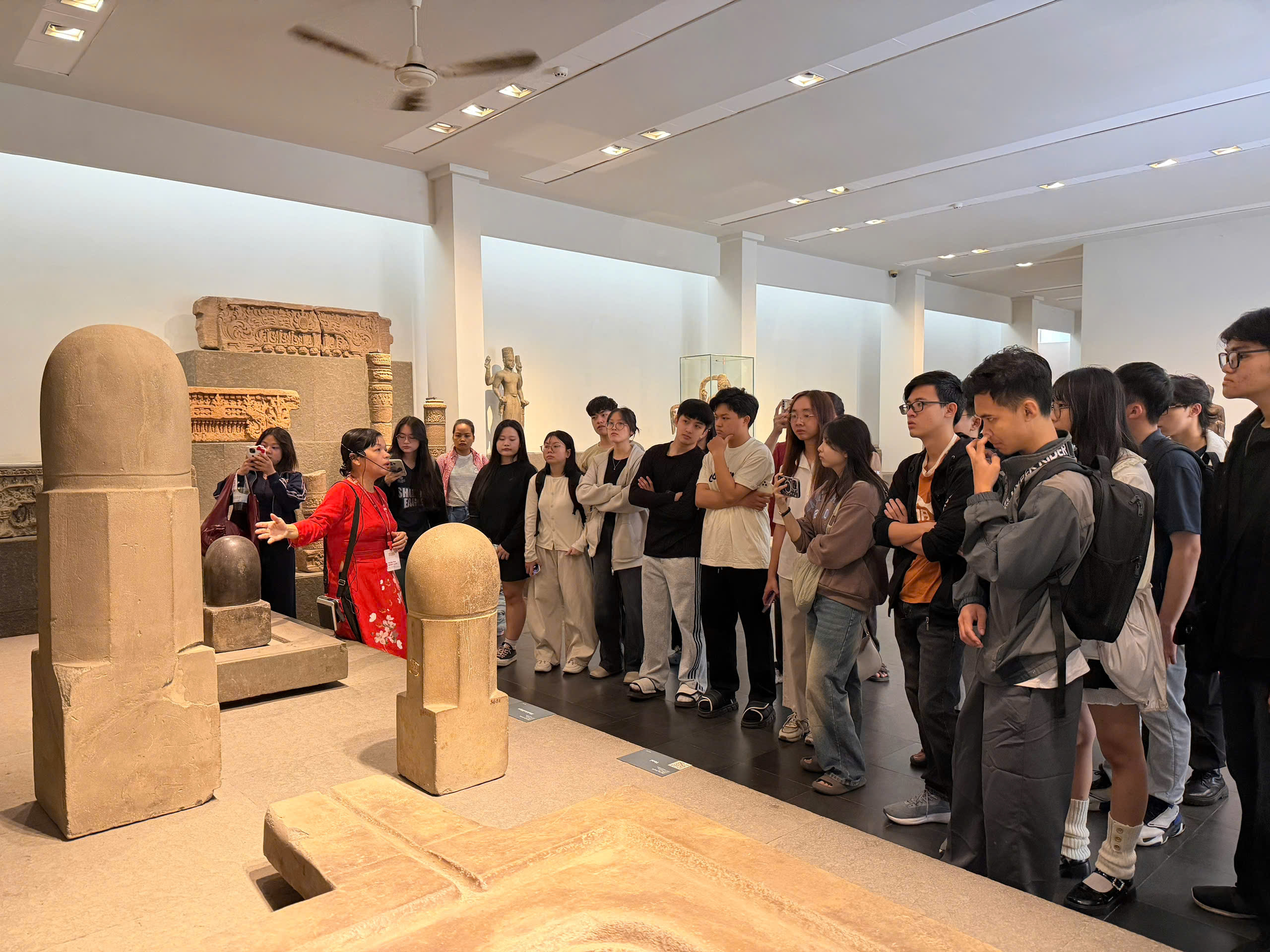 Tại đây, sinh viên đã có cơ hội tiếp cận trực tiếp với kho tàng hiện vật quý giá, minh chứng cho sự phát triển lâu đời của văn hóa và lịch sử Việt Nam. Chuyến đi không chỉ là một buổi học ngoại khóa, mà còn là hành trình tiếp thêm động lực học tập, giúp các bạn sinh viên tự tin hơn trong việc định hình phong cách thiết kế cá nhân gắn liền với các giá trị văn hóa dân tộc.