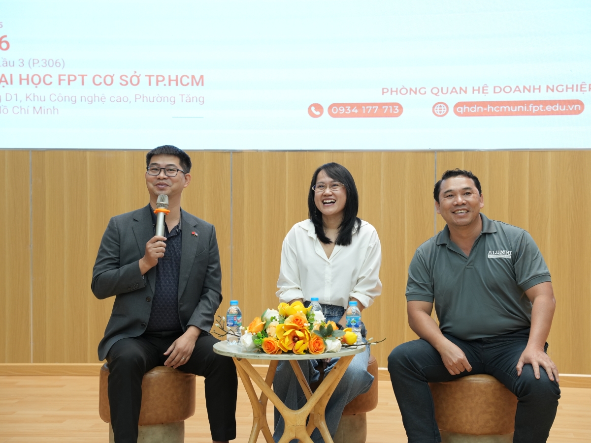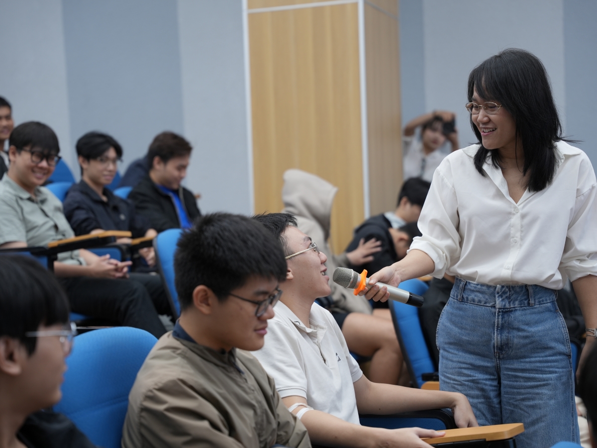 Phần hấp dẫn nhất chính là phiên Panel Discussion, điều phối bởi chị Emily Lê (Founder DigiSource) cùng hai diễn giả và sự góp mặt thầy Nguyễn Xuân Huy – giảng viên Bộ môn Trí tuệ Nhân tạo. Tại đây, những câu hỏi hóc búa về lộ trình 3 năm đầu sự nghiệp đã được giải đáp thỏa đáng.