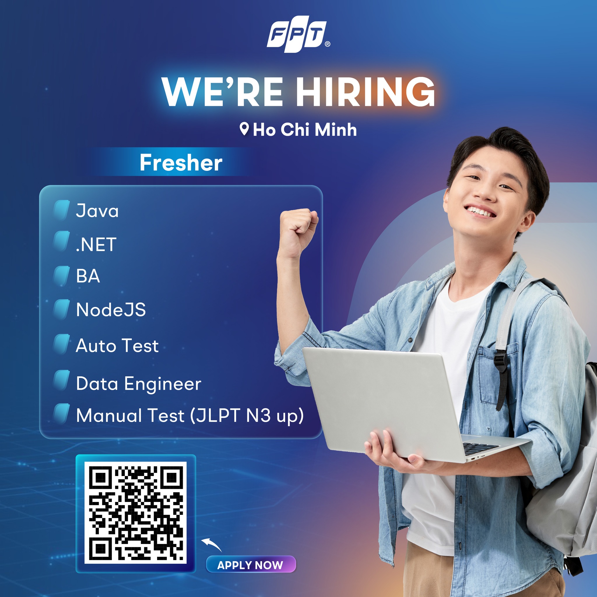 Học vấn: Sinh viên năm cuối hoặc mới tốt nghiệp các chuyên ngành CNTT, Khoa học máy tính, Hệ thống thông tin…