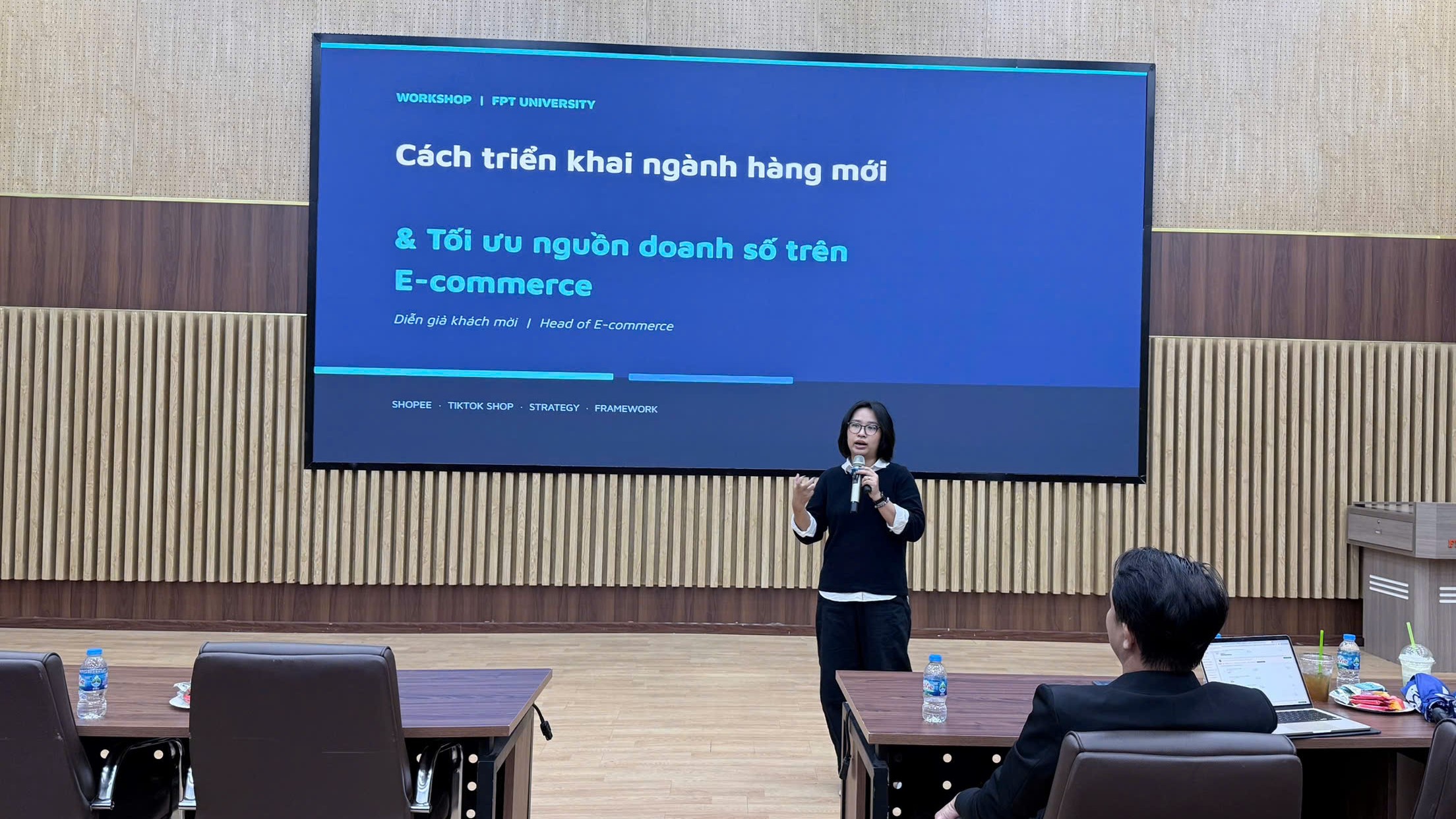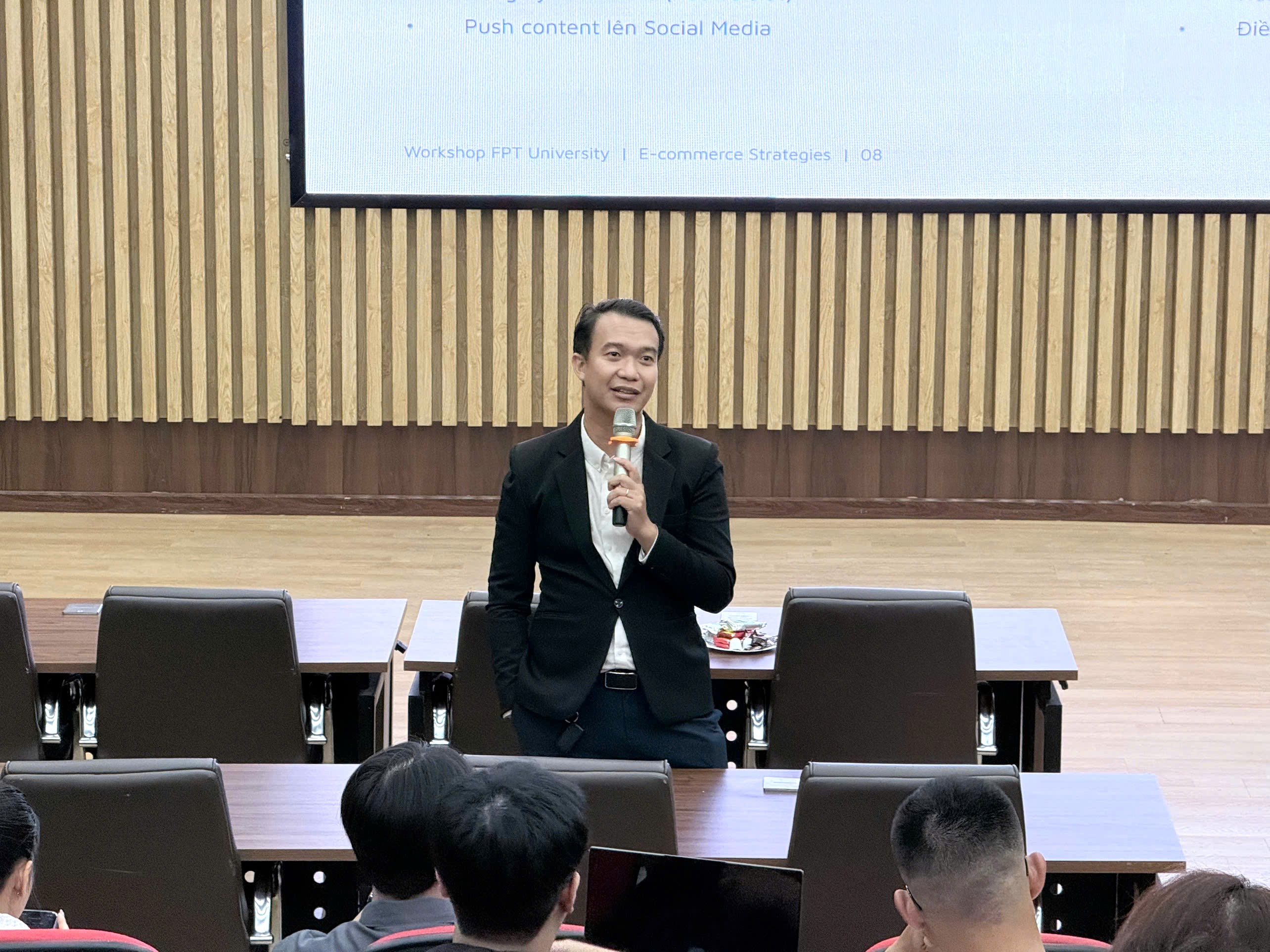 Ngày 16/03/2026, Workshop “Thiết Lập, Vận Hành Và Tối Ưu Doanh Thu Trên Sàn Thương Mại Điện Tử” đã diễn ra thuận lợi tại Trường Đại học FPT TP. HCM, mang đến nhiều kiến thức bổ ích cho các bạn sinh viên khối ngành kinh tế đam mê lĩnh vực kinh doanh online và mong muốn tìm hiểu về E-commerce.