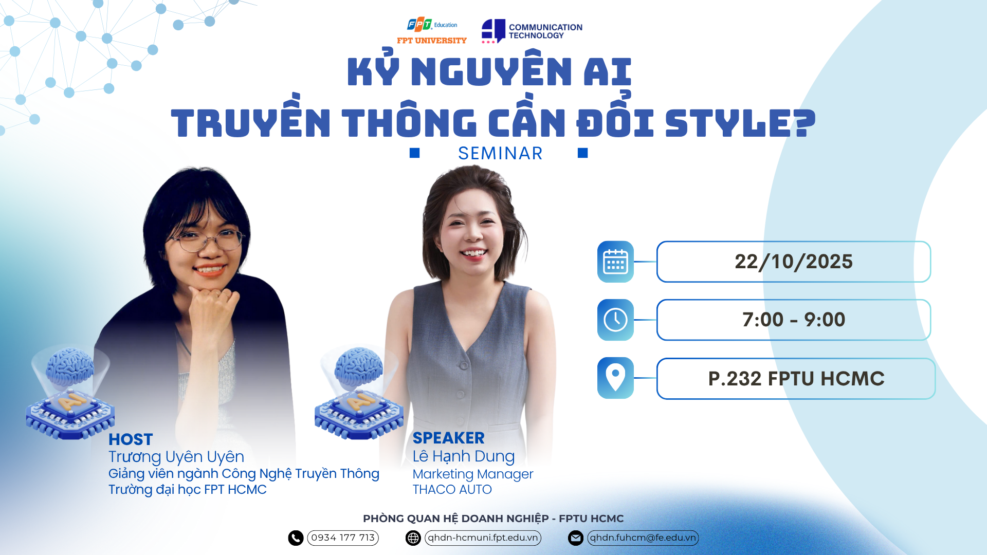 Chiều ngày 25/10/2025, tại Seminar 2, Talkshow “Bold Step” được tổ chức với sự tham [...]